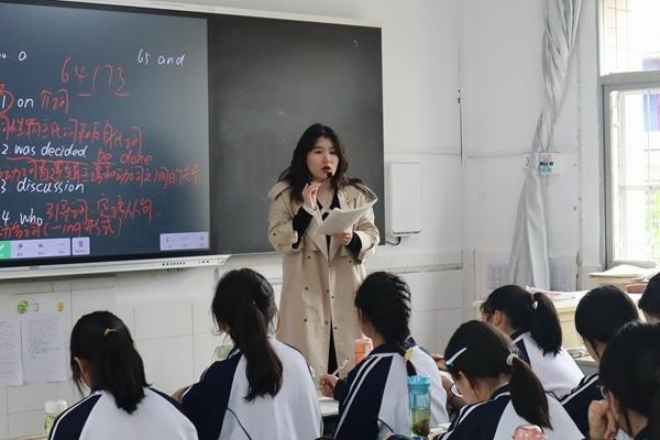 2023年,张慧美在石泉中学支教,为同学们上英语课。受访者供图